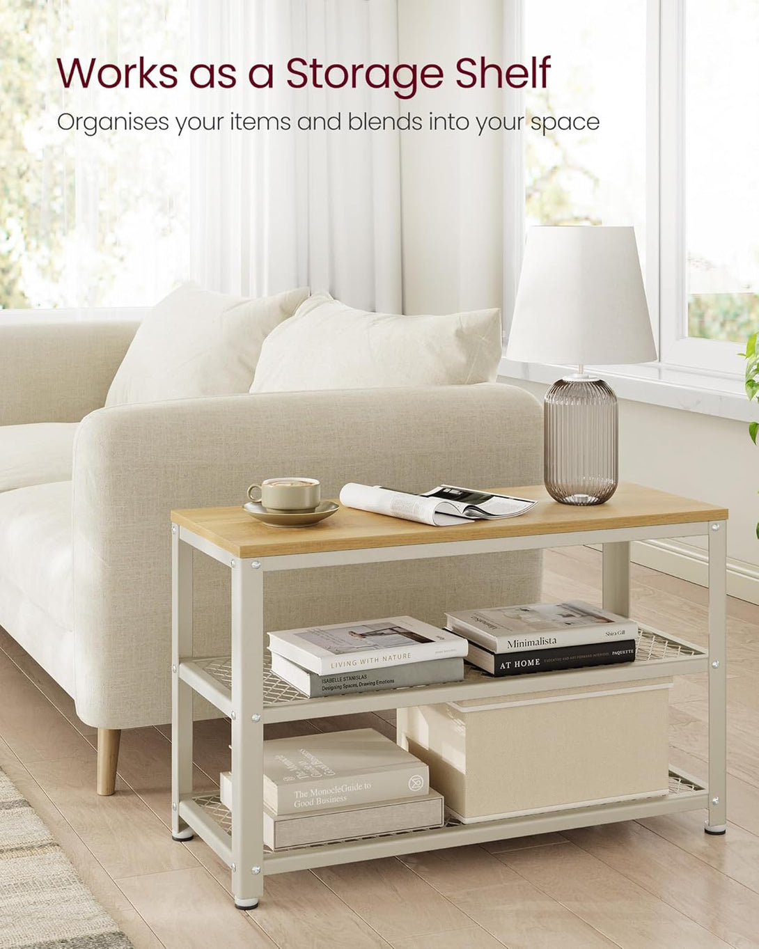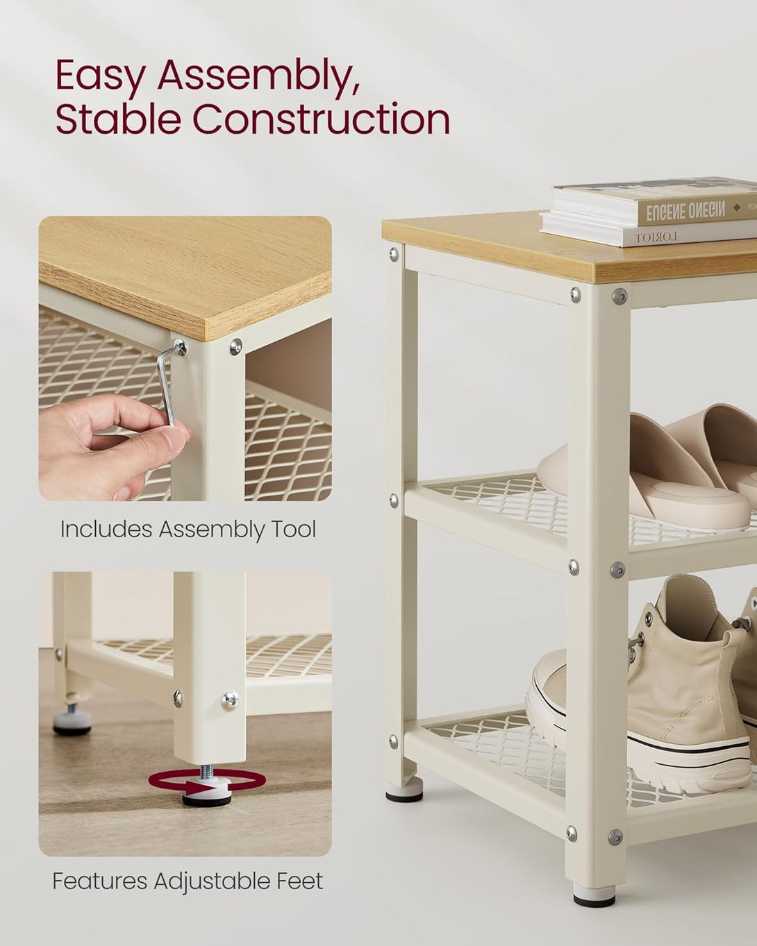 Lavice na boty, Stojan na boty se 2 policemi, Organizér na boty, 30 x 73 x 45 cm, Vstupní hala/chodba, Ocelová konstrukce, Industriální styl, Dubová béžová a Klasická bílá