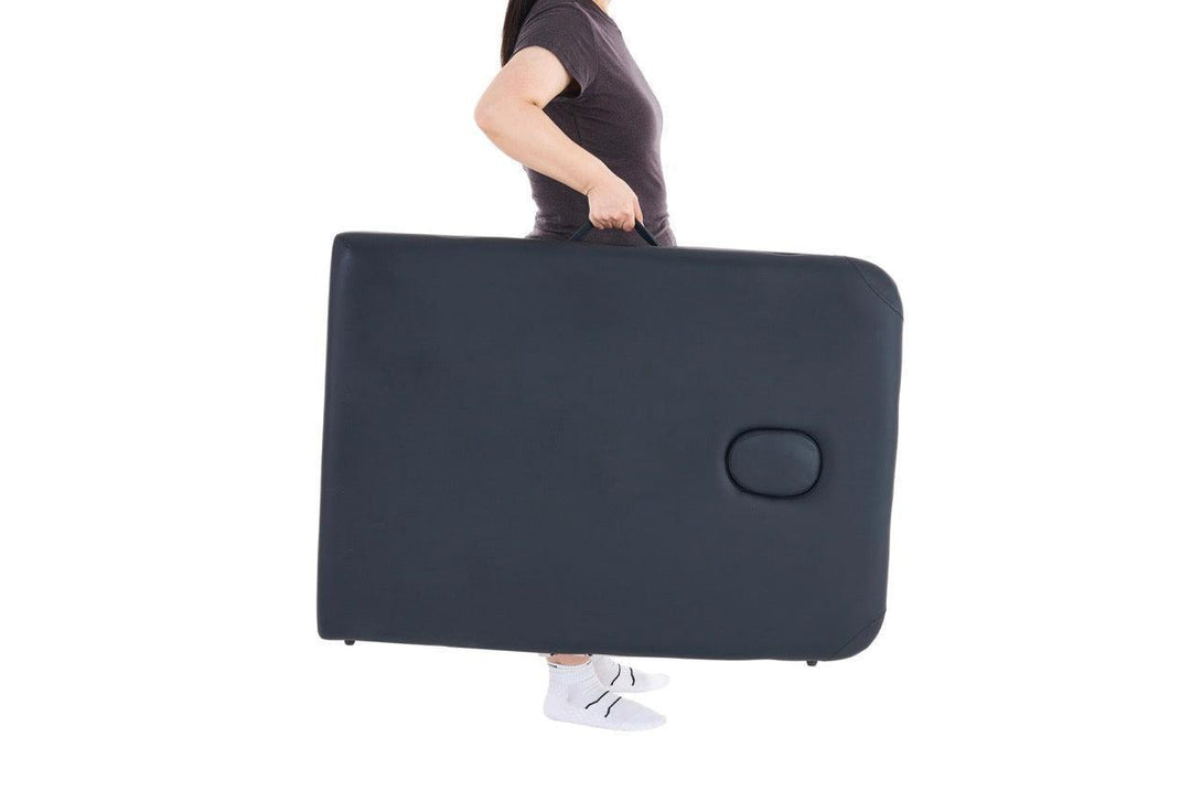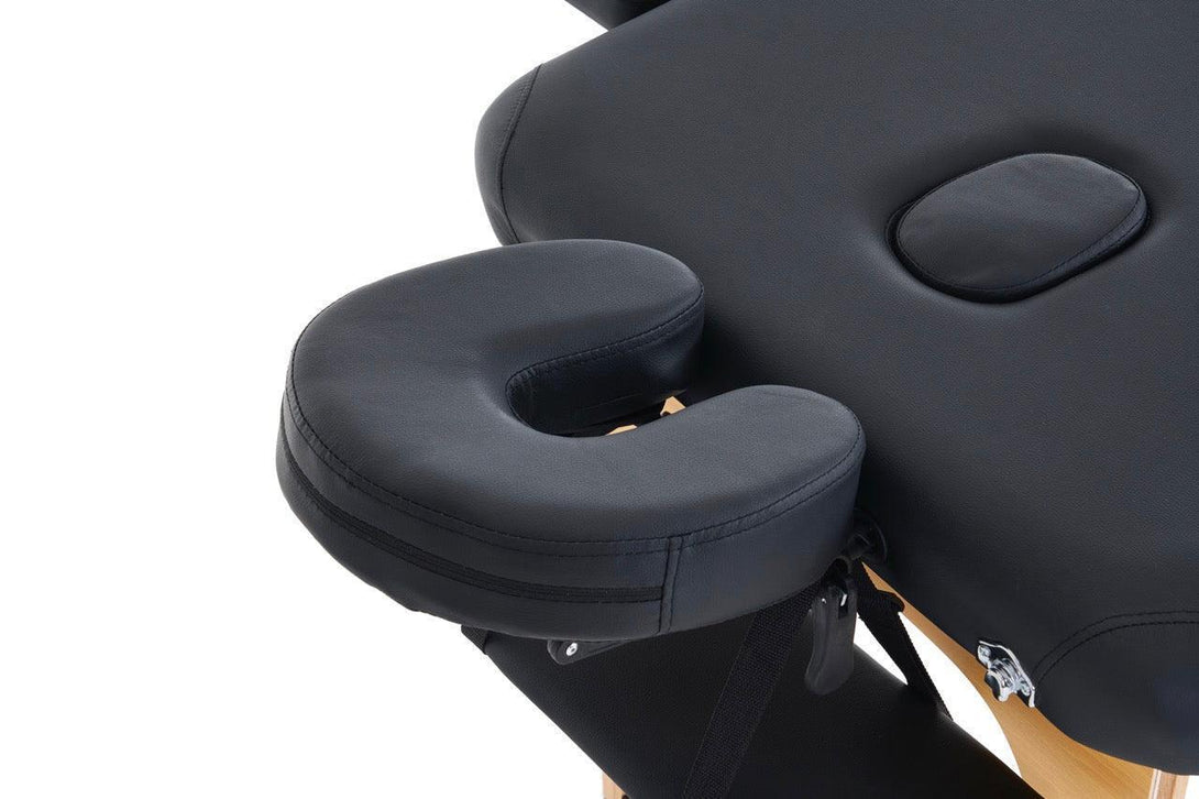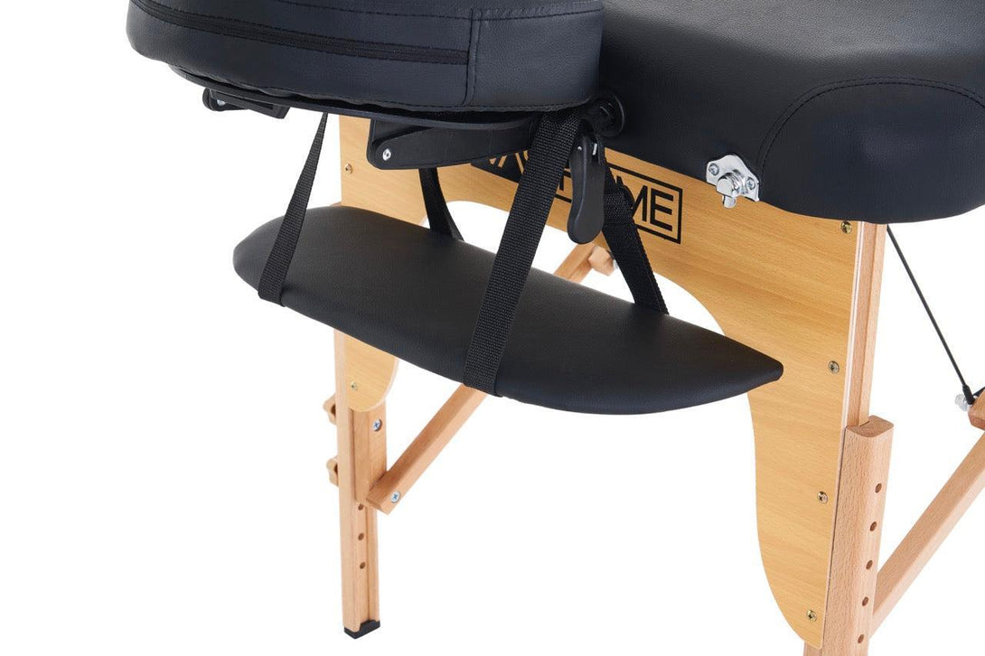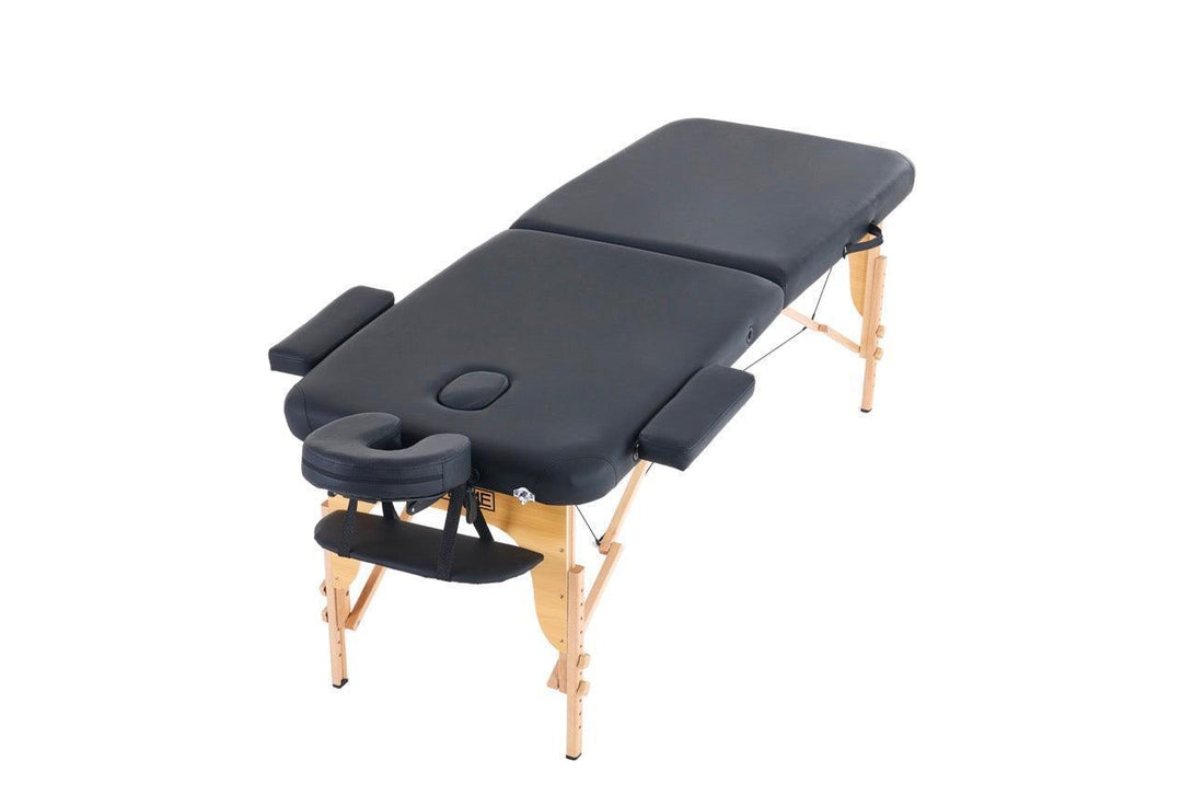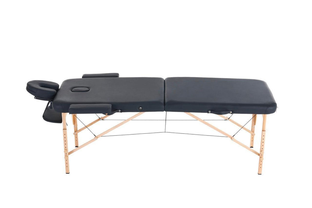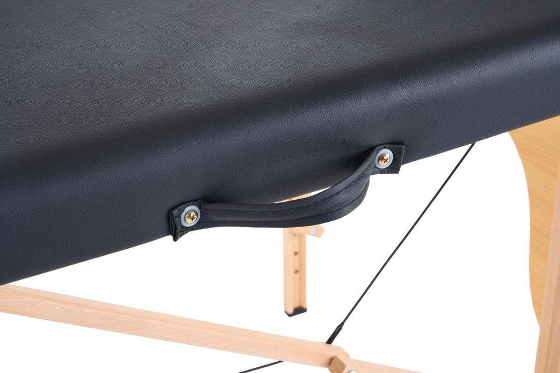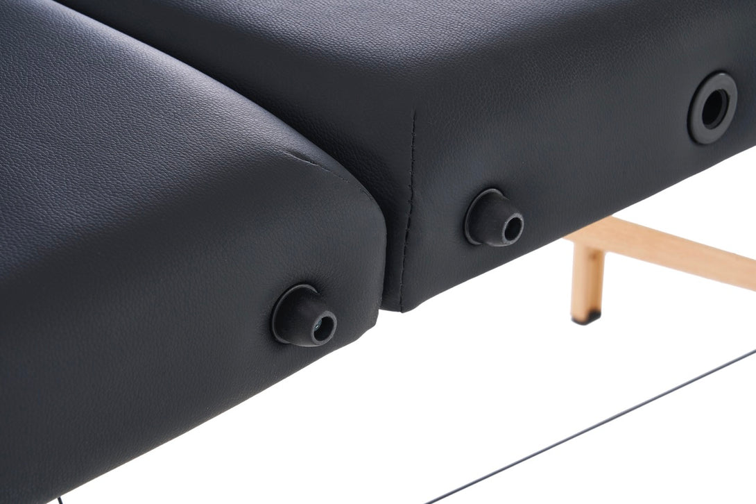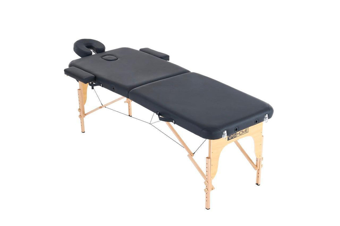 Masážní stůl, skládací a přenosný, dřevěný rám, Černý
