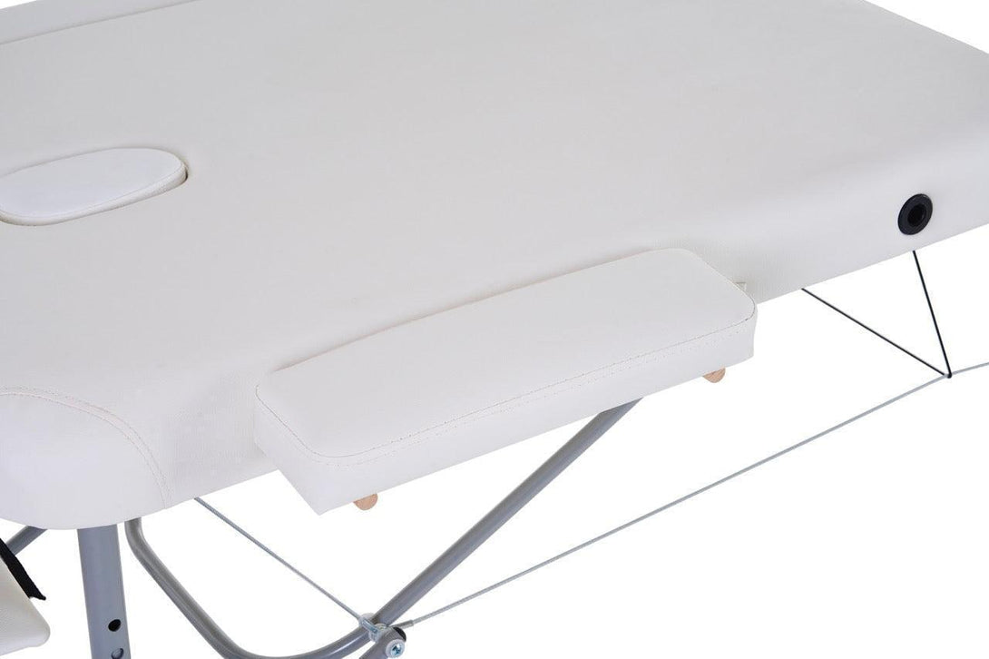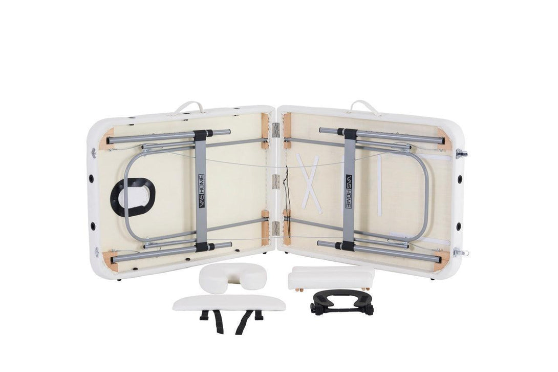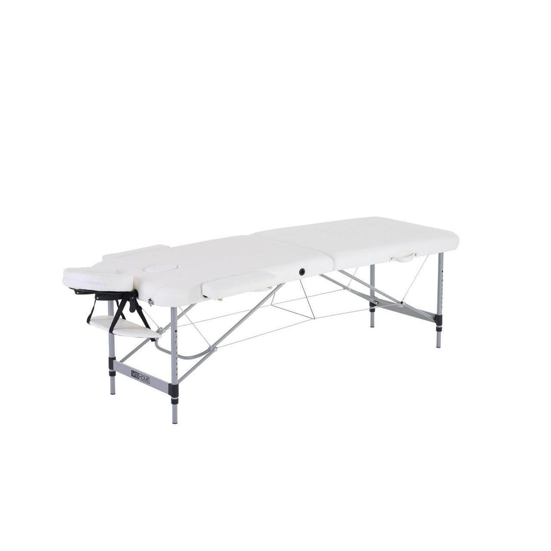 Masážní stůl, skládací a přenosný, hliníkový rám, Bílý