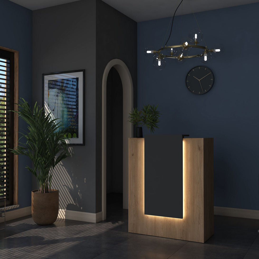 Uděláte trvalý dojem na své klienty a návštěvníky s touto recepční deskou, která spojuje funkčnost se stylem. Moderní design a prvotřídní materiály zajišťují, že vaše recepce bude působit profesionálně a sofistikovaně.