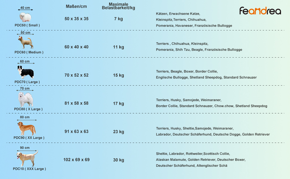 - [Určete správnou velikost] Box pro psa (60 x 42 x 42 cm) je vhodný pro psy o hmotnosti 7-11 kg. Doporučená plemena: Toy Pudl, Corgi, Francouzský buldoček. Postupujte podle pokynů pro správnou metodu měření