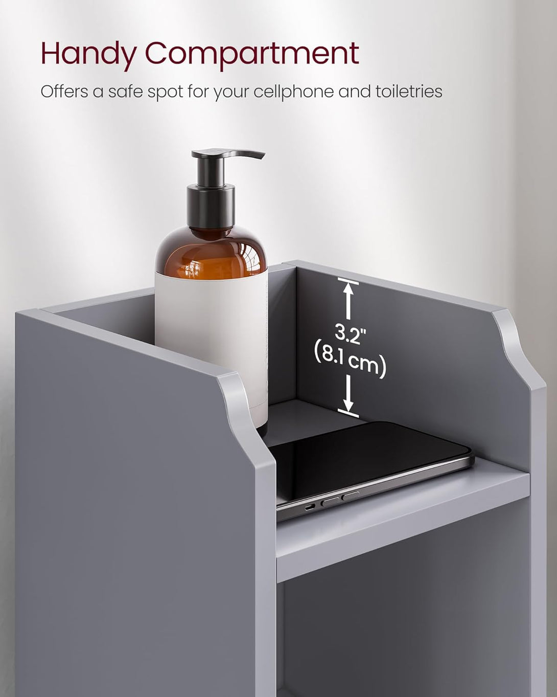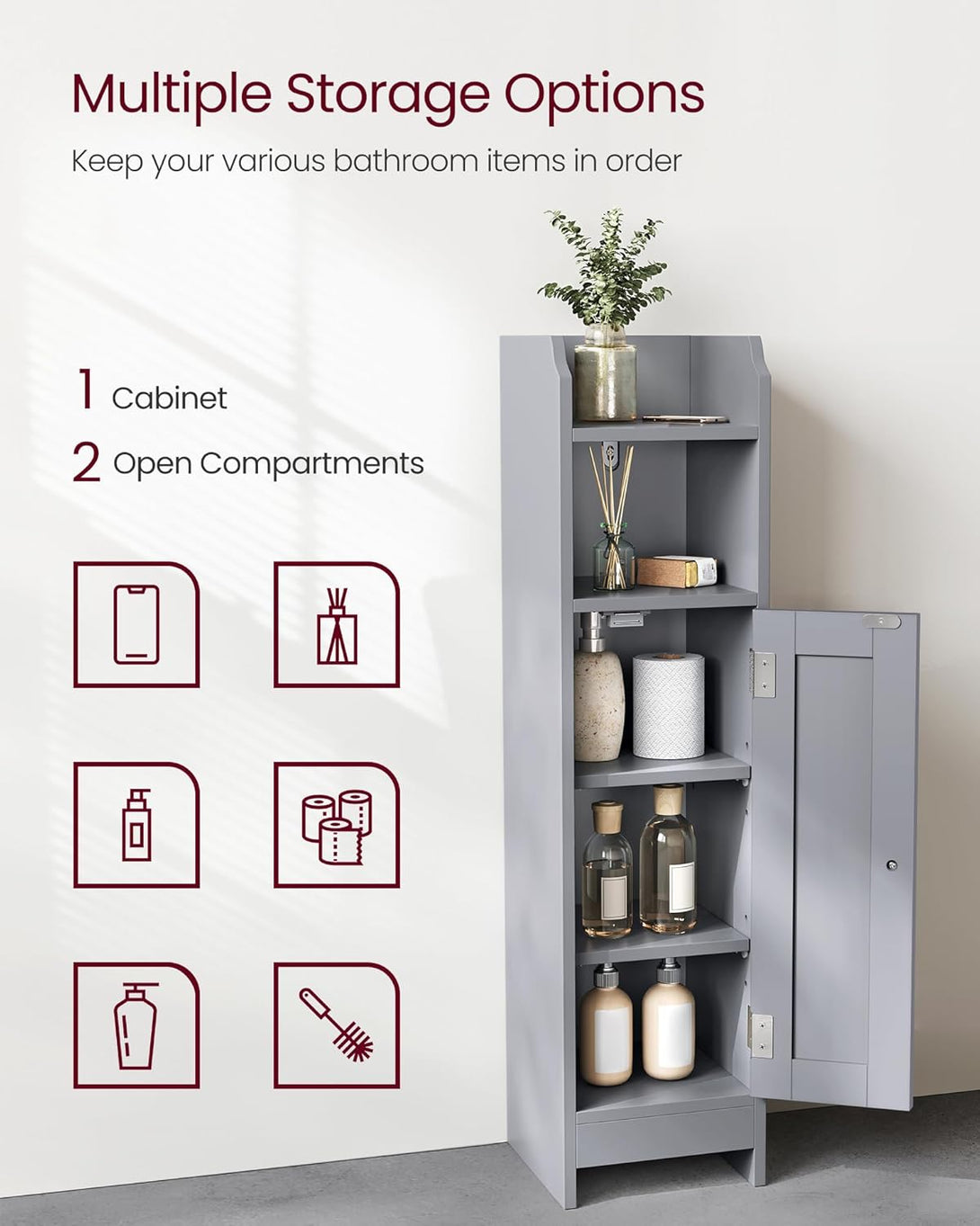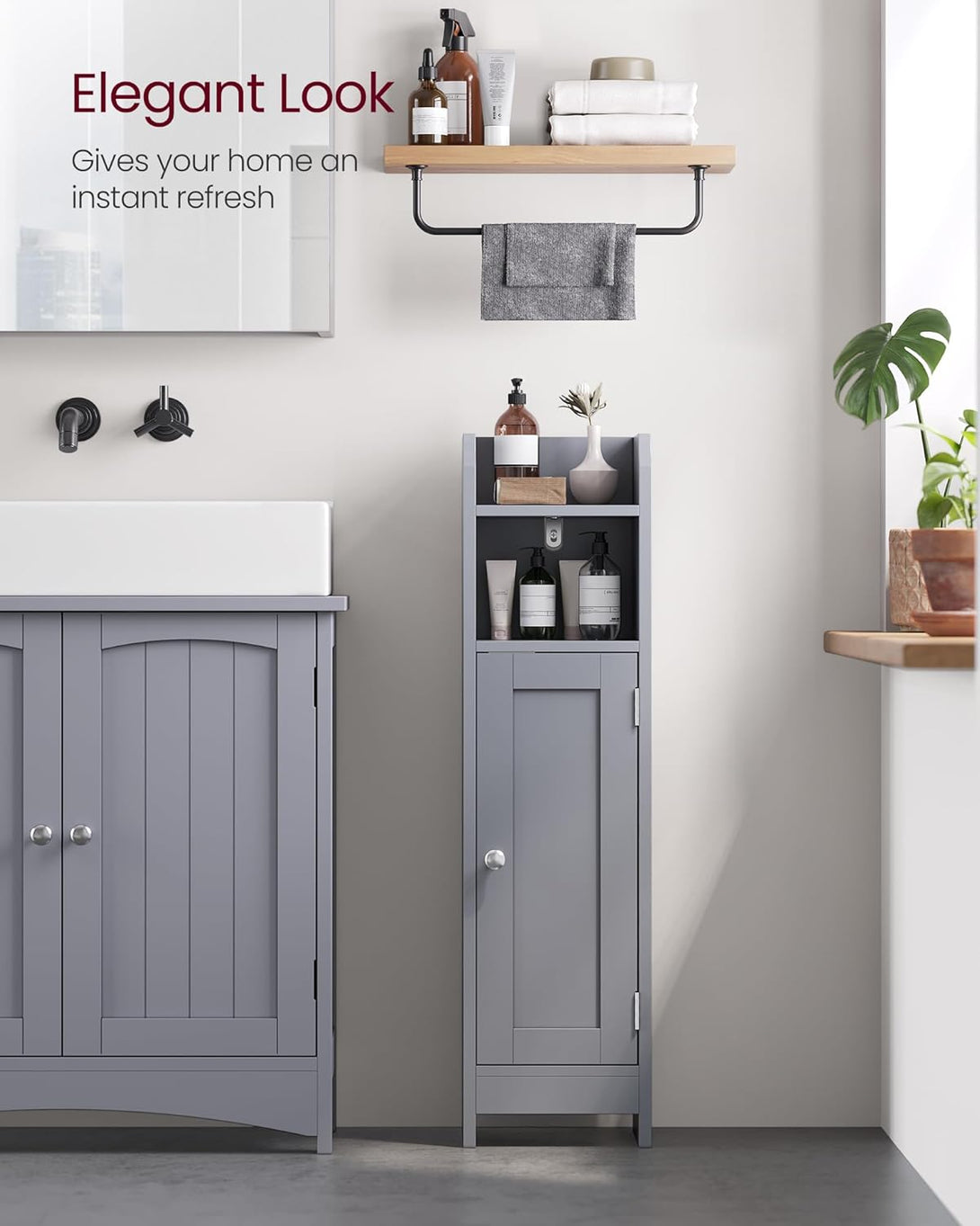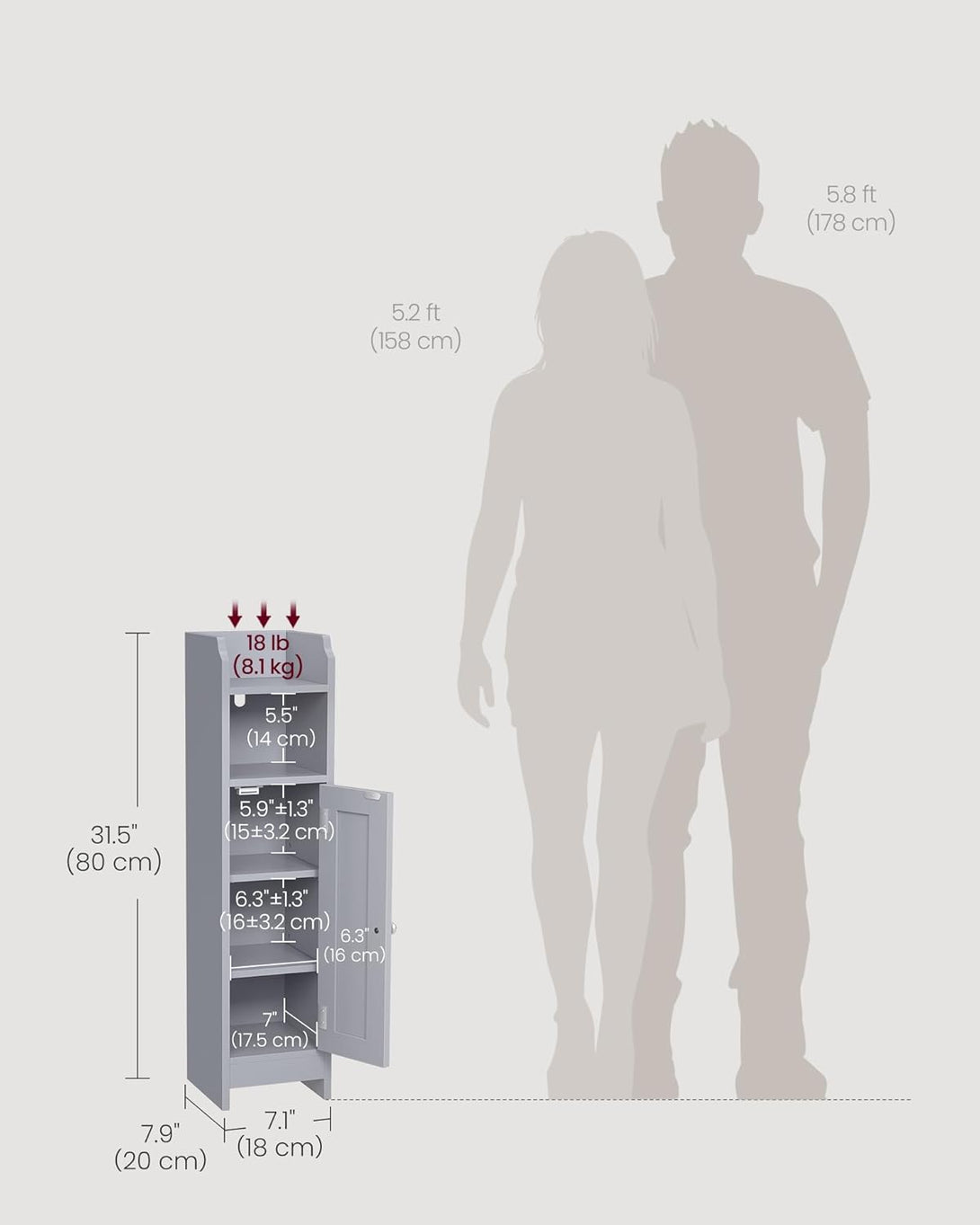 • [Optimalizace malých prostorů] Proměňte úzké kouty ve vaší koupelně na funkční a stylové úložné prostory s touto holubově šedou koupelnovou skříňkou. S rozměry 20 x 18 x 80 cm poskytuje další úložný prostor a zároveň zabírá málo místa na podlaze.